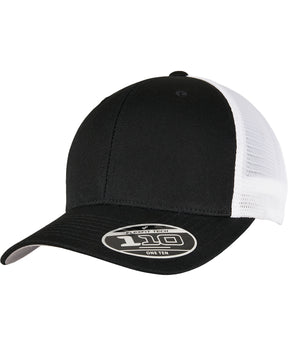 Two-toned trucker cap with adjustable, color-matching snapback closure, made of cotton and polyester, one size fits all, Flexfit 110 technology, 8-fold quilted, pre-bent visor.Product Features