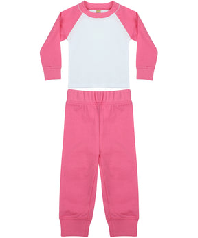 Baseball t-shirt with contrast sleeves and neck binding. Plain hem and cuffs. Twin needle stitching. Contrast plain pants with elasticated waist. Plain rib cuffs. Size tab only.Product Features