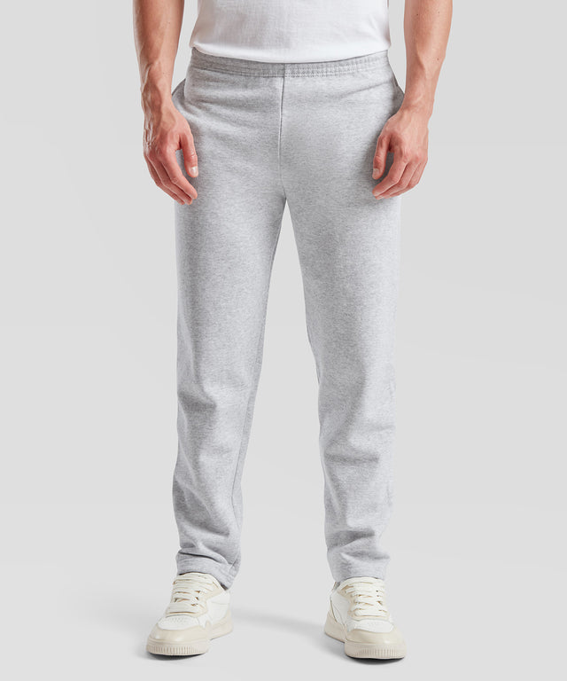 Cotton rich fleece. Fashionable open hem. Front and back rise differential for a better fit. Elasticated waist with self-coloured drawcord. No outside leg seam for maximum printability. Fashionable open hem. Side pockets.Product Features