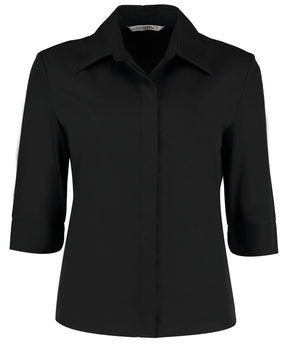 Soft interlined fused stand-up open collar. Covered front placket. Rounded hem. Side vents. Rounded cuff with vent. Centre back seam. Two back darts. Spare button. Kustom Kit® woven back neck label.Product Features