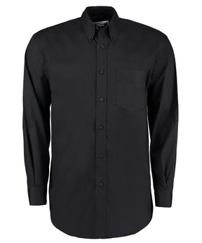 Fused stand-up button down collar. Central back pleat. Rounded hem. Chest pocket to left side as worn. 1-button adjustable cuff with 1-button cuff placket. Double-stitched side and sleeve seams. Spare buttons. Kustom Kit® woven back neck label.Product Features