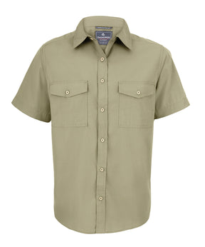 Short-sleeved shirt made with fabric too tough for insects to bite through. Recycled polyester cotton shirting and recycled zip tape. SolarShield collar. Nosi Defence technology.Product Features