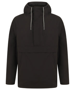 Hooded pullover jacket. Regular fit. Chest panel, front and back. Showerproof fabric, with mesh lining. Part-elasticated cuffs. 3-piece hood. Functional contrast lace drawcords around hood. Coated metal eyelets at hood opening. Centre front half- zip opening. Textured zip puller, with cord. Self-fabric storm flap, with hook and loop fastening. Elasticated cord through inside hem, with plastic toggles. Side-seam zip-opening, left hand side as worn. Large kangaroo style pockets. Inside patch pocket (with hook and loop fastening). Internal embroidery access. Back neck hanging loop.Product Features
