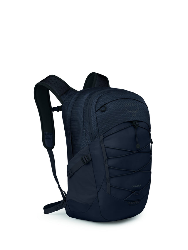 Durable dependable and equipped to confront the days challenges the slim and sleek Quasar is a pack youll reach for day in and day outwith enough room to carry your daily needs and smart features to ease your routine. A breathable backpanel and soft harness make for a comfortable carry no matter if youre commuting to work school the farmers market or your favourite watering hole. A 13 laptop sleeve protects your electronic work front panel pocket organisation keeps small essentials nearby and in their place and an exterior bungee secures items you need at a moments notice. An adjustable sternum strap and upper compression help stabilise your belongings and side water bottle pockets keep you hydrated on the move. Beautifully constructed from 100 recycled bluesign approved fabrics for a lasting pack without a lasting impact on the environment.