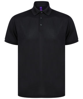 Polo shirt made from recycled polyester yarn with wicking properties. Regular fit with 3 button placket. Henbury stand-up collar. 1x1 ribbed collar and cuffs. Dyed to match buttons.Product Features