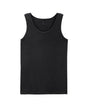 Wide straps. Rib knit trim applied to neckline and armholes. Twin needle bottom hem. Quarter-turned to eliminate centre crease. Tearaway label.