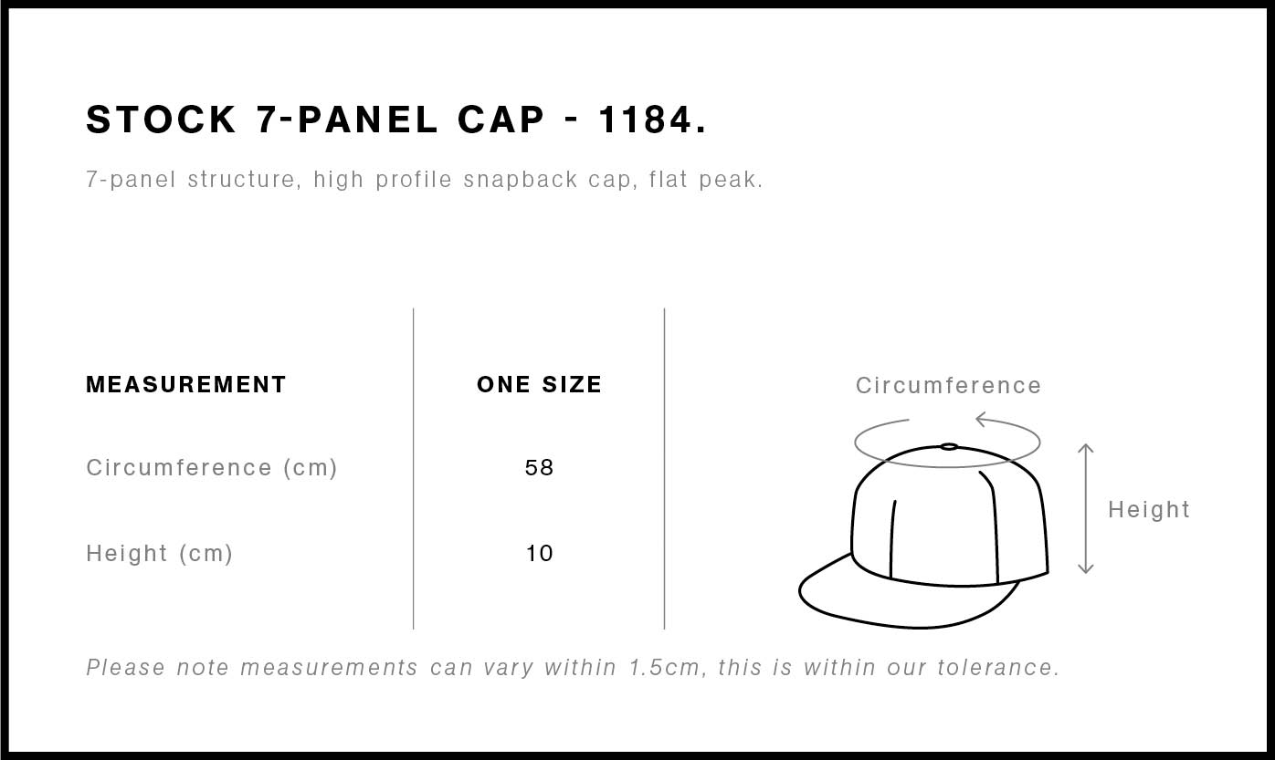 Stock 7-Panel Cap | 1184 - BLACK / One Size is backordered and will ship as soon as it is back in stock.