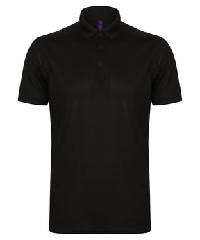 Modern fit wicking men's polo shirt with added stretch. Lightweight micro-fine piqué with a short point collar, fitted sleeve and cuffs. Front and back shoulder yolk detail. Micro-fine piqué is ideal for printing and embroidery. 3-button placket, dyed-to-match buttons. Henbury cut-out back neck brand label. Henbury cut-out back neck brand label. Wicking finish for added performance.Product Features
