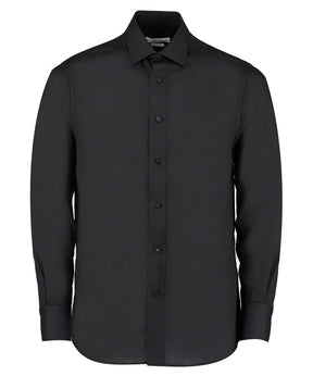Fused stand-up semi cutaway collar with removable collar bones. Easy-iron. Two button cuffs. Double-stitched side and sleeve seams. Spare button. Kustom Kit® woven back neck label. Single-stitched yoke and armholes. Rounded hem.