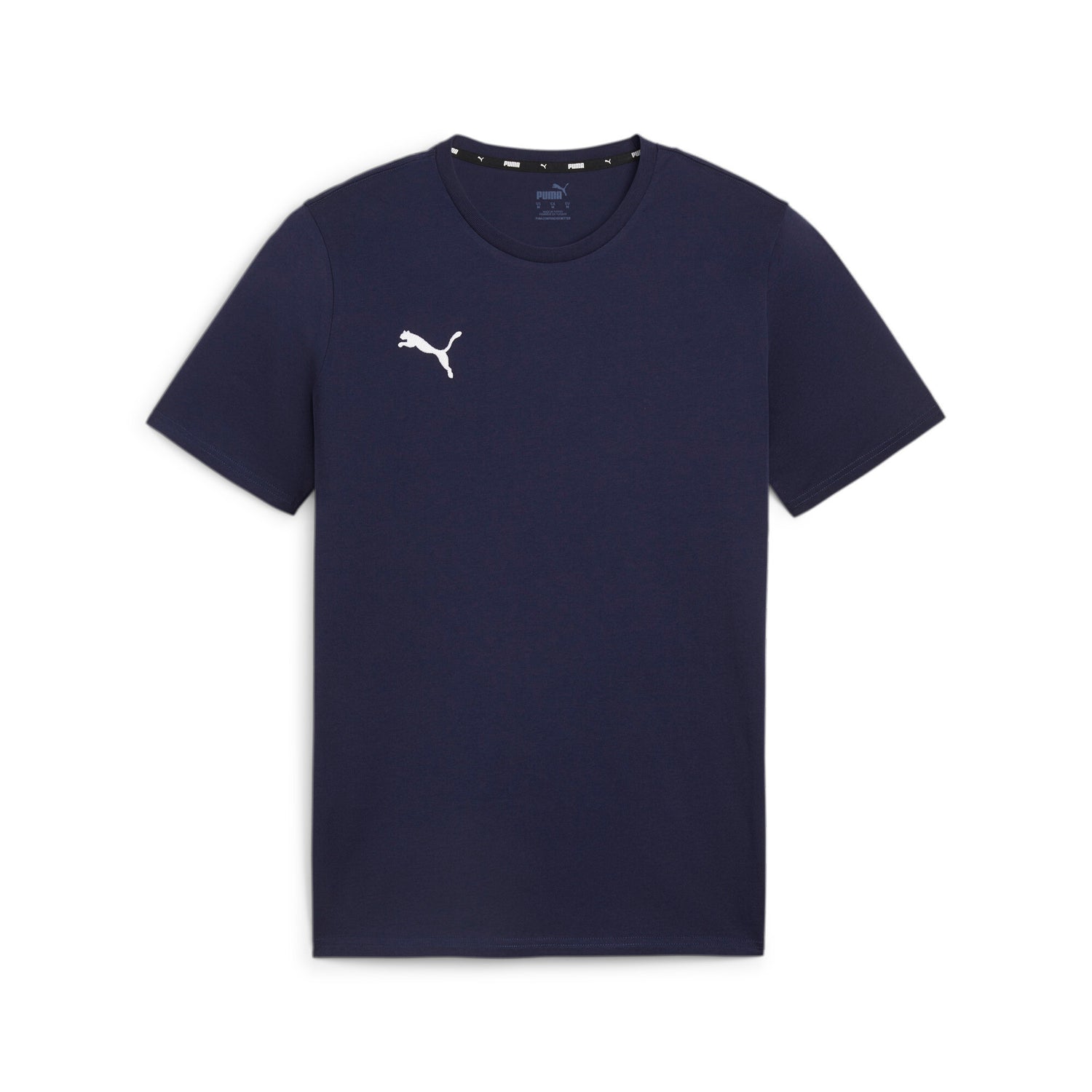 The Puma teamGOAL Casuals Tee is a comfortable, regular-fit t-shirt crafted from a blend of 22% recycled cotton and 78% cotton. It features a ribbed crew neck and an embroidered PUMA Cat logo on the right chest, making it both stylish and sustainable. Perfect for everyday wear.