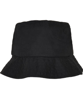 Water-repellent bucket hat in nice colors, made of sturdy nylon, slanted brim with decorative seams running across, eyelet vents.