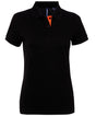 Women's contrast polo - Black/Orange / XS is backordered and will ship as soon as it is back in stock.