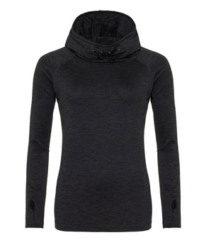 AWDis’ own CoolFit blended fabric containing elastane that provides stretch for comfort and a great fit. Cowl neck style hood. Sporty fit. Ideal for layering. Raglan sleeve design creates ease of movement. Reflective elements on hood for low light conditions. Reflective tab on back of neck helps keep ear phone cords in place. Toggled hood. Flat-lock stitching detail. Thumb hole opening. Simple tear off label makes it perfect for rebranding.