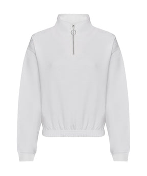 Women's regular fit. Funnel Neck. Quarter zip fastening. Cropped style. Elasticated hem. Brushed Inner fleece. Ribbed cuffs. Soft cotton faced fabric creates ideal printing surface. Simple tear out label makes it perfect for rebranding.Product Features