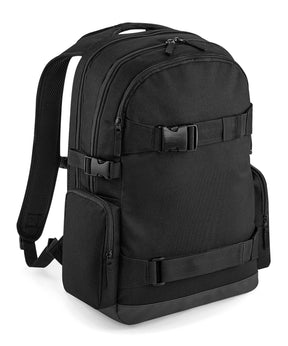 TearAway label for ease of rebranding. Laptop compatible up to 17". External access padded laptop compartment. Skateboard carry straps. Internal organiser section. Zippered front pocket. Zippered side pockets. Padded back panel. Compression straps. Padded adjustable shoulder straps. Grab handle.Product Features
