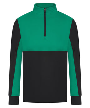 Contrast upper chest and underarm panels. Quarter zip. Side panels. Reverse nylon zips centre front and side pockets. 1x1 ribbed cuff sleeve. Semi-automatic zip pull and slider.Product Features