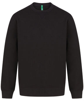 Fabric using recycled materials. Regenerated cotton mixed with recycled polyester. Brush back fleece. Set-in sleeves. Ribbed cuffs and hemline. V insert at neckline. Back neck tape. Regular fit. Henbury cut-out label for easy rebranding.Product Features