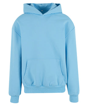 The men's hoodie features a large hood and wide rib cuffs on the sleeves and hem. The integrated kangaroo pockets add a practical touch. A casual urban fit with dropped shoulders creates a masculine silhouette. The men's hoody is made of smooth and heavy brushed fleece, which can be further refined using flex or screen printing.