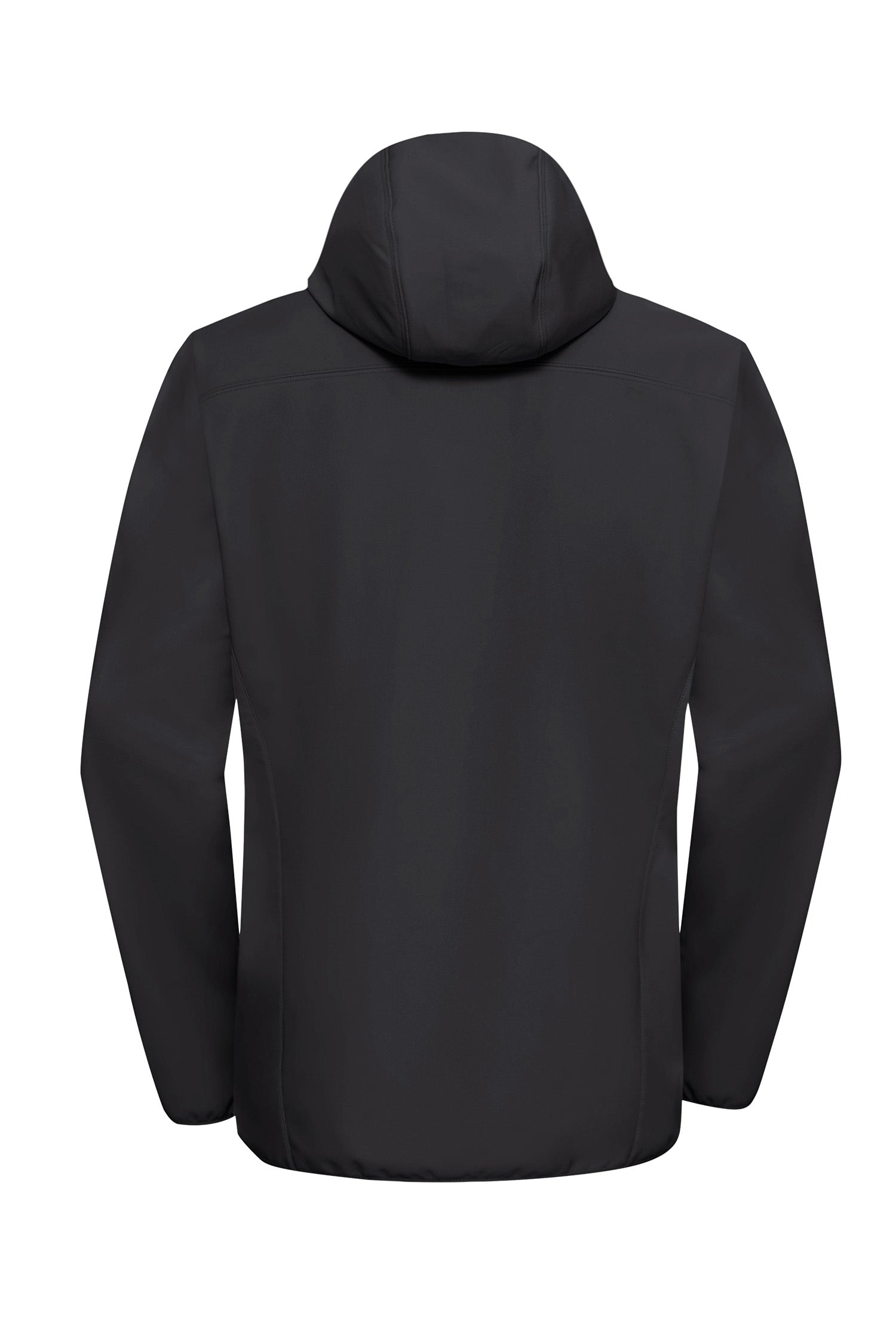 The BORNBERG HOODY softshell jacket is the perfect companion for your hiking trips. The TEXASHIELD PRO SOFTSHELL fabric makes the jacket windproof, water repellent and very breathable. The thread loops on the reverse side prevent microplastic particles being released into the wastewater during the wash cycle.The articulated elbows promote good freedom of movement. The hand pockets are positioned slightly higher, so you can access them easily when carrying a pack. The hood provides additional protection if you get caught in a shower.