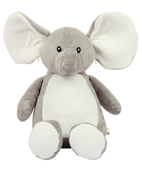 Soft plush elephant. Contrast cream inner ears, feet, and front panel. Sewn eyes. Zip access on base for direct access onto the tummy for decoration. Removable inner stuffing. Zip access to both ears for decoration onto the ears. Can be embroidered or sublimation printed. Complies with EN71 European Toy Safety regulations. Remove all hang tags and their fasteners before giving these items to a child. Suitable for children of all ages.Product Features