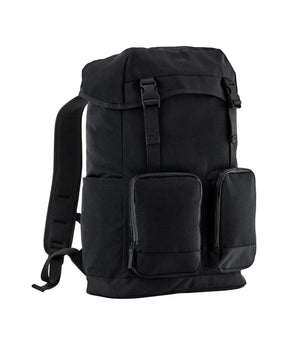 Contains 100% certified recycled polyester. Water-repellent fabric. Rear padded laptop compartment, compatible up to 16". Side pockets with magnetic closure. Large main compartment. Two zipped front pockets. Zipped rear security pocket. PU, self-coloured zip pulls. Drawstring closure. Rear luggage strap. Padded, adjustable shoulder straps. Grab handle. TearAway label for ease of rebranding.