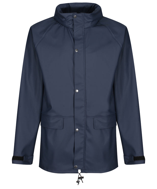 Highly breathable waterproof and windproof PU-coated fabric. Comfortable and lightweight tricot knit backing. Packaway hood with adjusters and studded stormflap. Adjustable cuffs and hem. Reach certified. Ethical Trading Initiative certified.Product Features