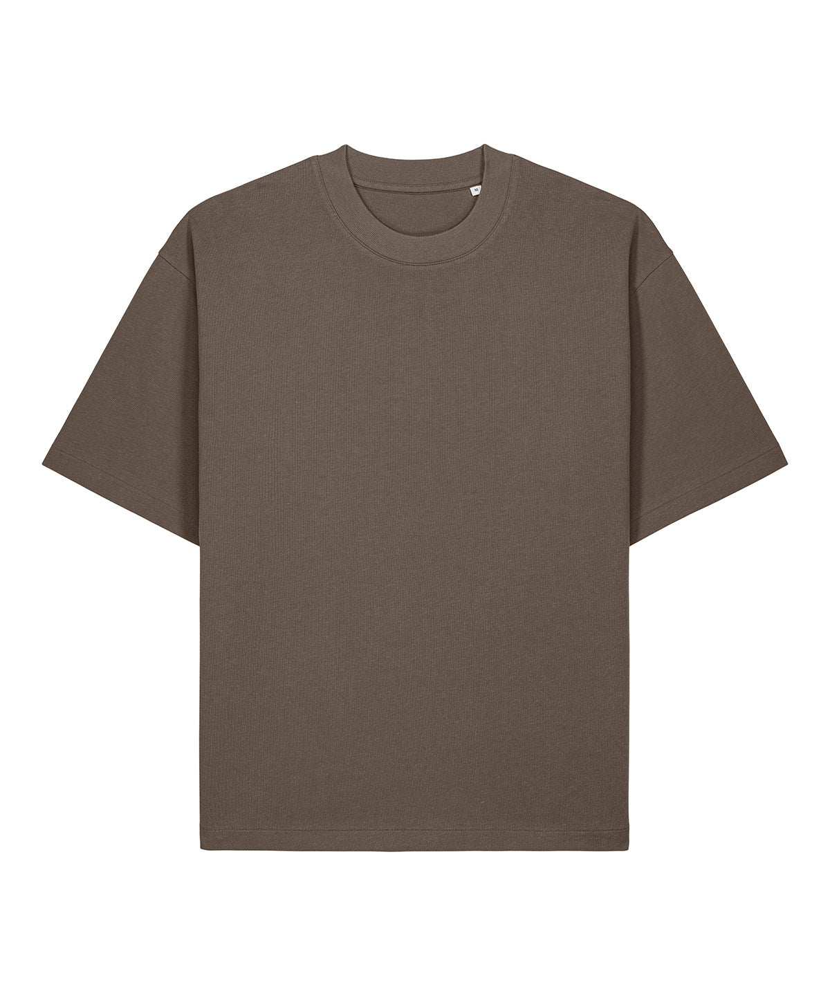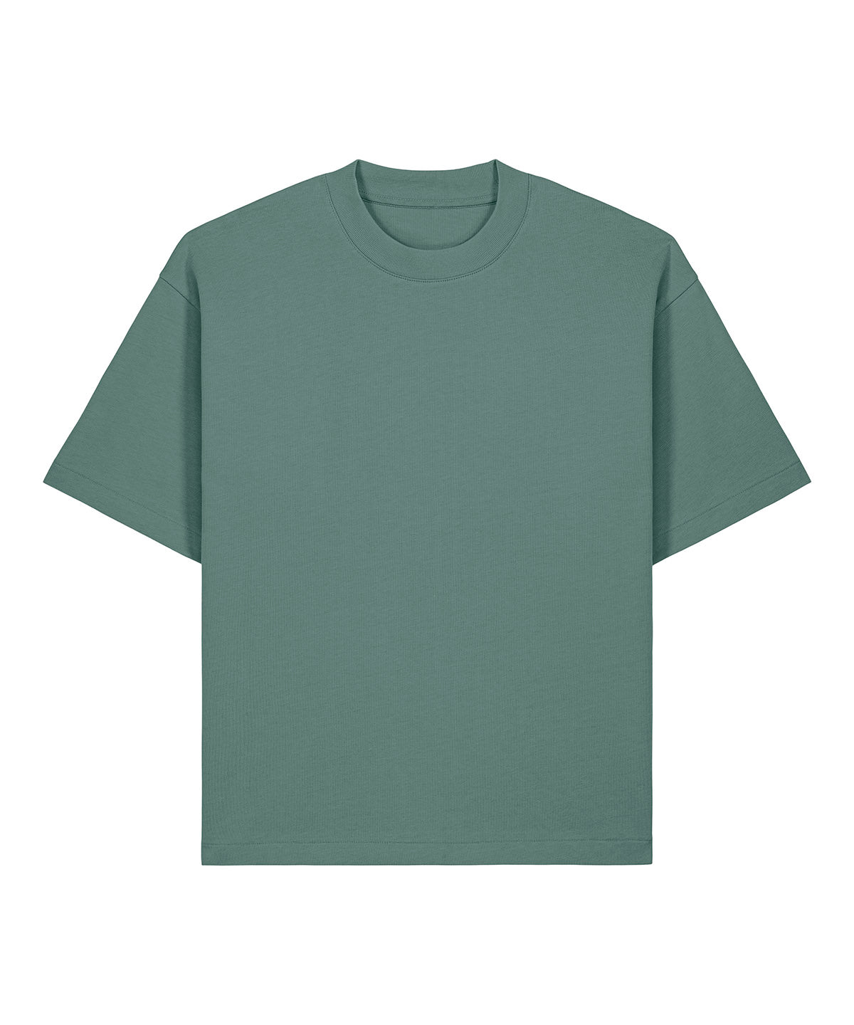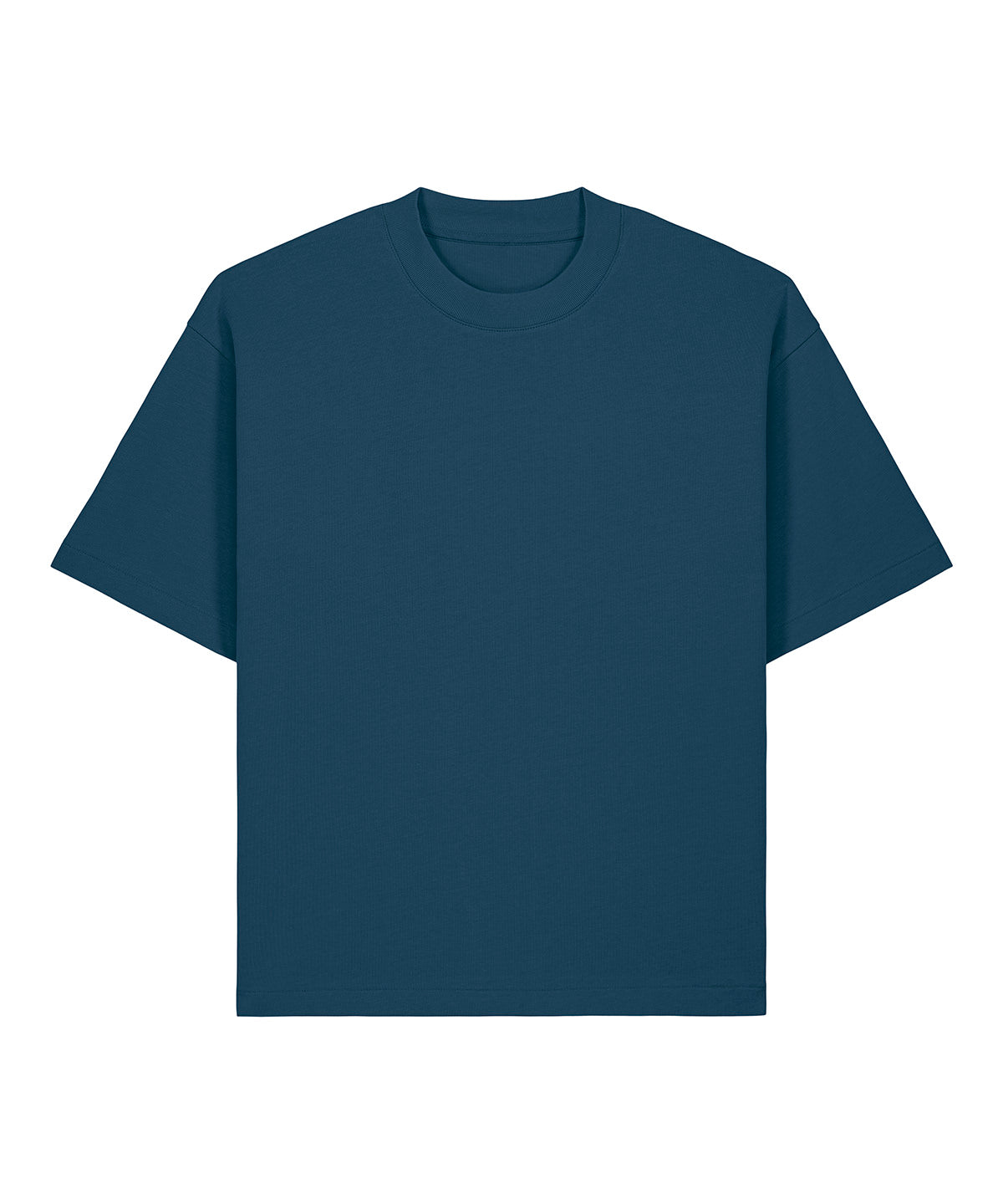 Unisex heavyweight boxy t-shirt. Oversized fit. Set-in sleeve. 1x1 rib at collar. Inside back neck tape in self-fabric. Blind stitch at sleeve cuff and hem.Sizing to Fit: XXS 32/34" XS 34/36" S 36/38" M 38/40" L 41/43" XL 43/45" 2XL 46/47" 3XL 48/50"