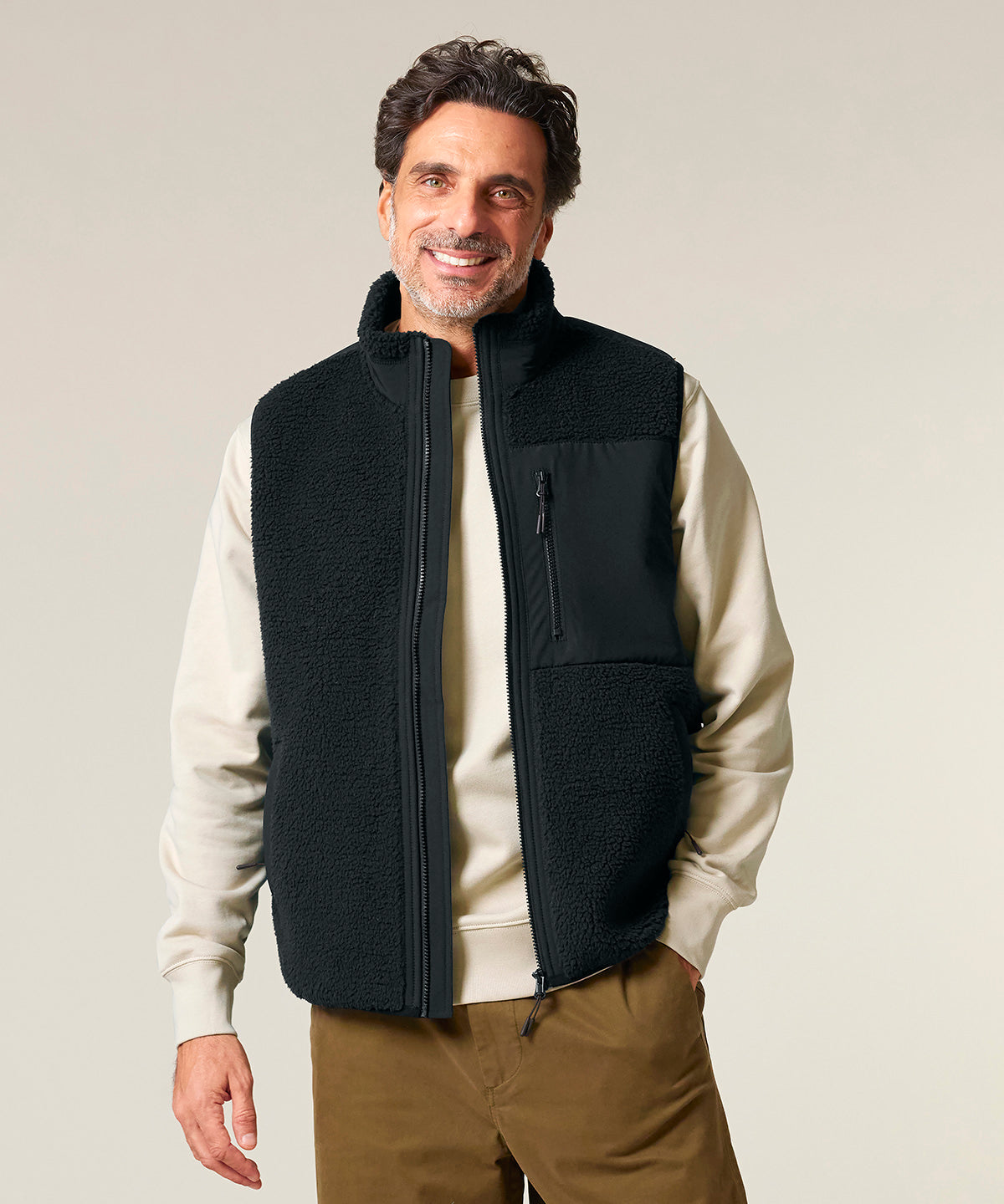 Sleeveless. Elastic recycled binding at cuffs and hem. Inside back neck binding loop and back neck tape. Plastic Vislon zip with metal zip pull and cord ends. Fully bonded inside polar fleece layer with anti-pilling finish. Front side contrast softshell welt pockets with hidden zip closure. Contrast softshell fabric at pocket, back yoke and outer collar band. Inside invisible zip at the wearer’s left chest for easy decoration.Sizing to Fit: XXS 32/34" XS 34/36" S 36/38" M 38/40" L 41/43" XL 43/45" 2XL 46/47" 3XL 48/50"