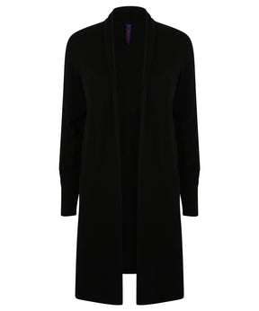 Fine knit, 12 gauge women's long line loose cardigan. Half ribbing detail on body and sleeves. Semi-fashioned sleeve. Henbury cut-out brand label. Co-ordinates with HB720 product range.Product Features